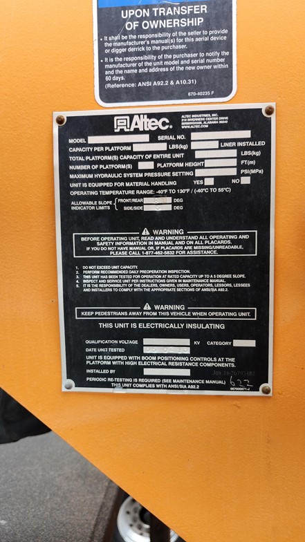 2013 F750 with 6.7LT Cummins engine, 6 speed manual transmission, 75' working height Altec LR760-70 boom, clean southern US truck