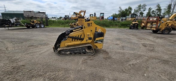 2017 Vermeer S725TX S725TX Mini Skid Steer On the commercial jobsite or at home, use the versatile Vermeer mini skid steer. Designed according to customer input, these skid steers fit into small spaces and are lightweight enough to use on most landscape surfaces. Intuitive joystick controls are easy to master, and several industry-leading safety features help protect the operator. Available in wheeldriven or track-driven models, these highly productive skid steers maneuver easily around tough worksites and reduce workloads in the process. In addition, Vermeer mini skid steers boast the breakout force and lift capacity more commonly associated with larger skid loaders. Hydraulics Hydraulic Tank Capacity 11.5 gal 43.5 L Std Pump Flow 13.5 gpm 51.1 L/min Hydraulic System Flow System Pressure 2950 psi 203.4 bar Hydraulic Operational Rated Operating Capacity 750 lbs 340.2 kg (SAE) Tipping Load 2145 lbs 973 kg (With 175 lb (79.38 kg) operator) Engine Drivetrain Fuel Tank Capacity 14.5 gal 54.9 L Engine Make Kubota V1505-E4B Travel Speed Forward 4.5 mph 7.2 km/h Fuel Type Diesel Gross Horsepower 24.8 hp 18.5 kw Cooling Liquid
