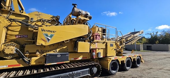 2018 Vermeer HG6000TX - Rent or purchase HG6000TX HORIZONTAL GRINDER Vermeer horizontal grinders are built tough and offered in a variety of configurations to suit large land-clearing, municipal waste and composting operations. The grinders feature optional length feed tables, and the Thrown Object Deflectors (TOD) reduces the quantity and distance of thrown material.Self-propelled track grinders are highly maneuverable and are able to work on uneven terrain jobsites and land-clearing projects. Vermeer horizontal grinders feature remote-controlled operation, our exclusive SmartGrind feed system and the patented Vermeer Duplex Drum. Loading Height-14 ft 4.3 m Hitch-Fifth wheel Screen-Dimensions: 3/4in (1.9 cm) thick Type: Fabricated out of abrasion resistant steel Area: 3317 sq in 21400 sq cm