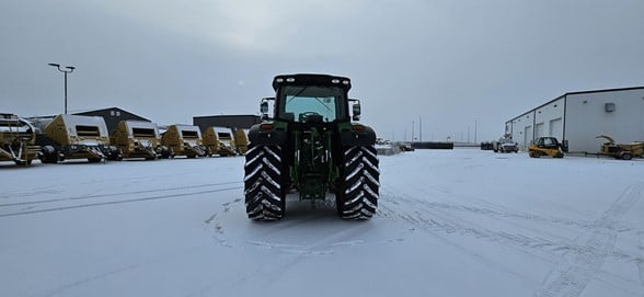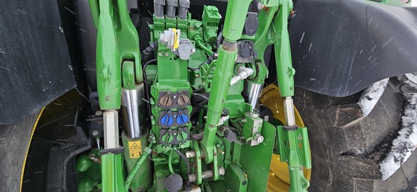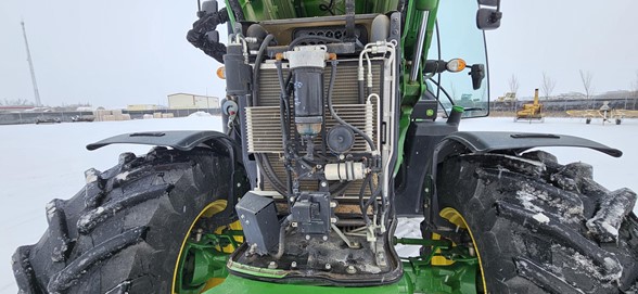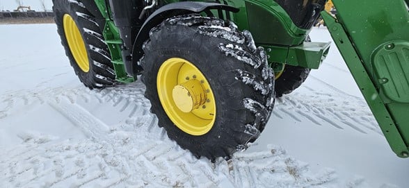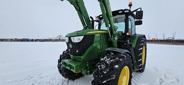 2020 John Deere 6145R Row Crop Tractor 145hp, Premium cab 1495hrs 640R Loader with grapple bucket 3 hyd remotes ISO BUS/Greenstar ready 650/65R38 rear tires 540/65R28 front tires Hyd trailer brakes Mirrors 8.4 Command Centre display