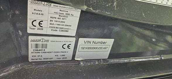 2020 Vermeer ATX850 loader, 599hrs, bucket, forks, no A/C, no cab door.