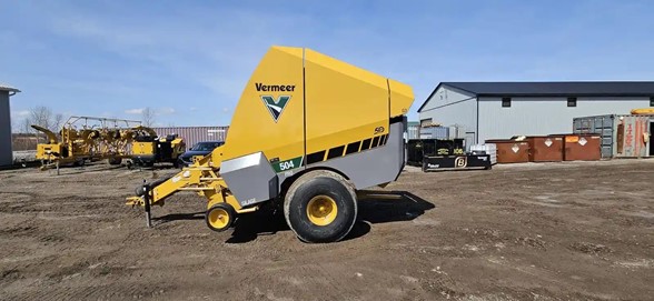 2021 504 PRO G3 Baler 1119HR Oncoming rain clouds can ruin a hay producer's day. That's one reason why silage is quickly becoming a preferable option for producers everywhere who are tired of waiting on good weather and want high-quality forage for their cattle. According to Michigan State University Extension, silage harvested within five days of the optimal time has a feed quality advantage of $26.46 per ton over dry hay*. For some producers, that's reason enough to make the switch. The Vermeer Generation 3 Pro balers were specially designed and built from the ground up in Pella, Iowa, to handle the rigors of baling wet, heavy crops -- combining strength and smart features while still giving operators the versatility of having a baler that can bale dry hay. Drivetrain Bearing and Sprocket Configuration-Round and Hex drive shafts, greaseable roller bearings Roller chains-Single 60, 80, 100 and Double 80 Torque protection pickup-Radial pin clutch Driveline-540 rpm, standard lube, cut-out clutch Operational- Extra roll storage-Standard Net tension control-via control system Net gauge via control system-Standard Netwrap system-Standard Density readings-Digital gauge Bale density adjustments-Standard through control system monitor Bales per hour-Standard Bale shape indicators-Standard Field statistics download-USB Field Statistics-50 fields with names Display-7 in (17.8 cm) color touch screen Control system type-Atlas Pro™ control system 3-year pickup warranty-Standard Pickup Lift-Hydraulic Flotation-Gauge wheels 7.10-16 HD semi-pneumatic with spring assist Stripper bands-Poly Teeth spacing-2.5 in (6.4 cm) Number of Teeth-(75) double rubber-mounted Tooth Bars-5 Width on outside flair-78 in (198.1 cm) Width tooth to tooth-73 in (185.4 cm) Pickup type-Camless wide PTO horsepower recommended-110 hp (82 kw) PTO horsepower minimum-80 hp (59.7 kw) Type of Lace-No laces Length of belt (long-433.1 in (1100.1 cm) Width of Belt-11.2 in (28.4 cm) Number of Belts-4 Belt Type-Endless belts Start Roller Size-8 in (20.3 cm) Idler roller size-6.6 in (16.8 cm), 4.5 in (11.4 cm) Drum roller size-9.5 in (24.1 cm) Drive Roller Size-7.1 in (18 cm) rubber and (1) 6.6 in (16.8 cm) steel Maximum bale weight-2400 lbs (1088.6 kg) Bale Width-48 in (121.9 cm) Bale Diameter-36 in - 60 in (91.4 cm - 152.4 cm) Dimensions- Height-120 in (304.8 cm) Weight fully optioned-9825 lbs (4456.5 kg) Tires-Standard: 14L-16.1; Optional: 21.5L-16.1 flotation Width with optional tires-112 in (284.5 cm) Width with standard tires-96 in (243.8 cm) Length standard-205 in (520.7 cm)