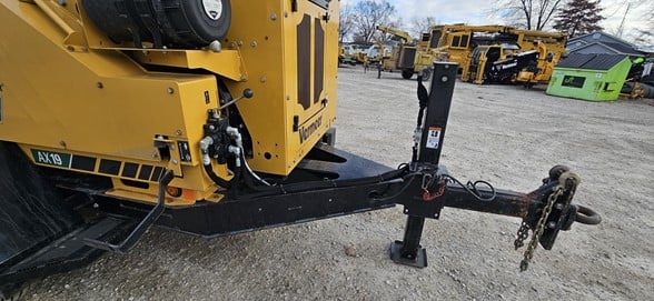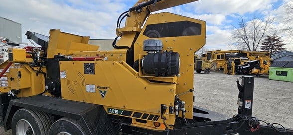 AX19 BRUSH CHIPPER Equipped with mechanical feeding capabilities and a 173-hp (123-kW) John Deere diesel engine, this unit will efficiently work in large land-clearing operations or on a rural jobsite. The AX19 features up to 12,000 lb (5443.1kg) of pull-in force with the support of the patented SmartCrush control system, allowing you to feed large-diameter logs or branchy limbs with minimal effort. With no two jobs alike, the AX19 is built to finish the challenge. Operational Four Position Feed Control Bar-Standard Bottom Feed Stop Bar-Standard Green Hold To Run Button-Standard Reset Method-Green Hold to Run Button Diameter-36 in (91.4 cm) Reduced Sensitivity-12 deg Normal Sensitivity-22 deg Actuation Force Bfsb-34 lbs (15.4 kg) Actuation Force-34 lbs (15.4 kg) Bottom Feed Stop Bar Diameter-2 in (5.1 cm) Material Thickness-11 in (27.9 cm) Positions-4: E-Stop, Forward, Neutral, Reverse Bottom Feed Stop Bar Material Thickness-11 GA Bedknife Number Of Useable Edges-4 Bedknife Size-3" x 20.25" Weight With Shaft-1160 lbs (526.2 kg) Thickness-26.1 in (66.3 cm) Fixture Method-Weld-on Number Of Paddles-12 Number Of Knives-12 Knife Size-0.625 x 5 x 10 Safety Lock Number Of Positions-4 Speed-1100 Replaceable Threaded Knife Block-Yes Number Of Boltsknife-5 Useable Edges-2 Width-.5 in (1.3 cm) Bedknife Thickness-1.3 in (3.2 cm) Bedknife Material-1018 CD Material Capacity-19 in (48.3 cm) Knife Thickness-.6 in (1.6 cm) Material-A8 Modified Chipper Steel Fender Description-Bolt-on Hitch Type-Pintle Frame Description-7.5" Z-Channel x 0.25" Thick Toolbox Description-Standard Tongue Extension-Extendable 12" Tongue Description-5" x 3" x 0.375" Tires Option One-LT285/75R16 Load Range E Axlesuspension-Tandem Torsion 7000 lb capacity Capacity Option One-14,000 (Tandem 7,000 lbs) Manufacturer Option One-Dexter Type Option One-TandemTorsion Wheels Option One-16" Trailer Light Type-LED Brake Type-Electric Feed Roller Dimension-19" dia x 28.25 length Motor Manufacturer-White RE470 Number Of Feed Roller Motors-4 Feed Roller Orientation-Horizontal Number Of Feed Rollers-2 Feed Roller Dimension Two-11" dia x 28.25 length Weight Of Feed Roller Option Two-186 lbs (84.4 kg) Feed Roller Clamp Type-Hydraulic Motor Displacement-28.4 Infeed Hopper Height-35 in (88.9 cm) Number Of Knives2-10 Feed Roller Minimum Distance To Drum-5 in (12.7 cm) Weight Of Feed Roller-350 lbs (158.8 kg) Infeed Table Length-60.5 in (153.7 cm) Infeed Throat Capacity-28.875" wide x 24" tall Feed Speed-119 ft/min Infeed Table Width-71 in (180.3 cm) Infeed Table Material Thickness-.3 in (.6 cm) Distance From Feed Table To Ground-30.3 in (77 cm) Feed Roller Clamp Load-4000 lbs (1814.4 kg) Rotation Type-Worm gear with rotational lock Rotational Lock-Self lock Chute Rotation Angle-270 deg Deflector Thickness-.1 in (.2 cm) Chute Height-108 in (274.3 cm) Side Wall Thickness-.1 in (.3 cm) Bottom Thickness-.1 in (.2 cm) Top Thickness-.2 in (.5 cm) Filtration Method-6 micron return, 100 micron suction Oil Cooler-No Auto Reverse Psi-2800 psi (193.1 bar) Directional Control-Yes Flow Control-No System Relief Pressure-3000 psi (206.8 bar) Tank Capacity-20 gal (75.7 L) Recommended Oil Type-HY POWER 68 System Type-Open Center Pump Flow At Maximum Rpm-14.8 gpm (56 L/min) Electrical Battery-950 CCA Radio Remote Control-Optional Switches-Control Panel: Ignition, throttle, Smartfeed, exhaust regeneration, and ECOIdle. Rear: Lower feed bar sensitivity, Chute controls, Manual Crush Standard Gauges-Digital Display with tachometer, hourmeter, oil pressure, water temp, battery voltage and engine error codes. Fuel and DEF gauges System Voltage-12 Display-MFD Controller-Vermeer ACS: C248 Shutdown System-High temp, low pressure, Tier 4 emissions related Dimensions- Width-79 in (200.7 cm) Height-108 in (274.3 cm) Weight Without Winch And Hydraulic Jack-11000 lbs (4989.5 kg) Weight With Winch,Hydraulic Jack And Hydraulic Chute-11400 lbs (5171 kg) Weight With Outriggers Additional-170 lbs (77.1 kg)
