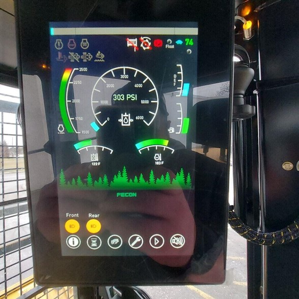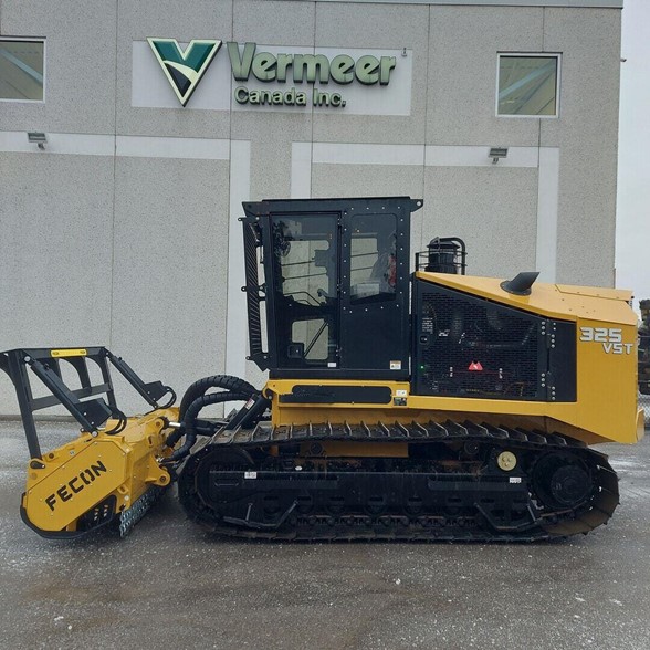 2022 Fecon 325VST Now Available to Rent or Buy - Call for a Price This low-ground pressure (3.9 PSI) tractor features an oscillating carriage with 30” track shoes, providing balanced traction in hard or soft conditions. A spacious cab features air suspension, heated seat, new larger touchscreen IQAN display, and keyless ignition with security for operator comfort and control. A tilting cab and wide engine compartment doors on the side and read, simplify access for maintenance and service. The 325VST also features the Fecon Power Management System for unrivaled power and performance in the 300HP Class. Operational Ground Pressure With Bullhog-4.1 PSI (SAE J1309) Travel Speed-4.5 mph Cab Certifications-ROPS (ISO 8082), FOPS (ISO 8083) and OPS (ISO 8084) Make-Cummins QSB6.7 Displacement-6.7L Cylinders-6 After Treatment-Tier 4 Final, Stage V Max Horsepower-310HP Max Torque-950 ft*lb @ 1500 RPM Fuel Consumption-7-9 gph Fuel Tank Capacity-100 gallons Def Consumption-0.4-0.5 gph Def Tank Capacity-15 gallons Electrical System-24V Battery-Dual 24V Slope Rating-50° fore/aft, 43° side/side Class-D4 Standard Grouser-Single Rollers-2 top/9 bottom Ground Clearance-23" Mulcher Circuit-115 GPM @ 5400 PSI Hydraulic Tank Capacity-49 gallons Standard Attachment-VM8620 Mounting Style-Pin-On Lift Style-Radial Lift Gear Max Reach With Bullhog-55" Max Below Grade With Bullhog-32" Measurements Weight-26,980 LB Track Width-30" Overall Height-125" (10' 5") Overall Width-94" (7' 10") Overall Width With Bullhog-101" (8' 5") Overall Length-185" (15' 5") Overall Length With Bullhog-232" (19' 4") Weight With Bullhog-32,092 LB