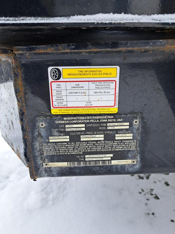 2022 Vermeer BC1500, 258hrs, new PSI gas engine installed, with winch.