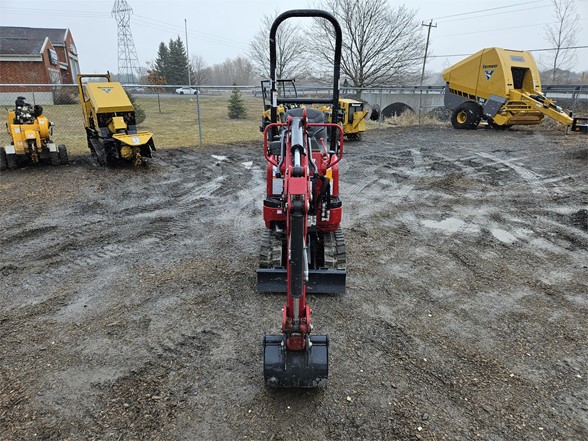 2023 Yanmar V08 Excavator | Only 3.7 HR | $29,500 CAD - FOB Get big jobs done, even when the jobsite isn’t. Our smallest mini excavator is big on capability and has all the right tools to accomplish tough jobs in the tightest spaces including inside buildings. With an ultra-tight tail, low-noise operation, and incredibly clean and environmentally friendly Tier 4 powertrain, it’s perfect for indoor operation, residential neighborhoods, or where minimal disruptions are critical. Plus, with adjustable width tracks and a folding blade, it can work in the tightest gaps. Engine-Output Hpkw Rpm -10.3 (7.7) / 2800 Type-Water-cooled 2-cylinder diesel Ground Contact Pressurerubber Track Psi(kpa)-4.15 (28.4) Performance Boom Swing Anglel R Degrees-45°/90° Performance Max Digging Force Bucket Arm Lbs(kn)-2360 (10.5) / 1390 (6.2) Performance Swing Speed Rpm-8.4 Performance Traveling Speed Mph(km) H-1.2 (1.8) Hydraulic Pto Combined Flow Double Actions-2625 (18.1), 5.2 (19.6) Main Relief Set Pressure Psi(mpa)-2625 (18.1) x 2 Blade Dimensions Width X Height Ftin(mm)-2´3˝/2´9˝ x 7˝ (680/840 x 180) Operating Weight Rubber Track Lbs(kg)-2348 (1065)