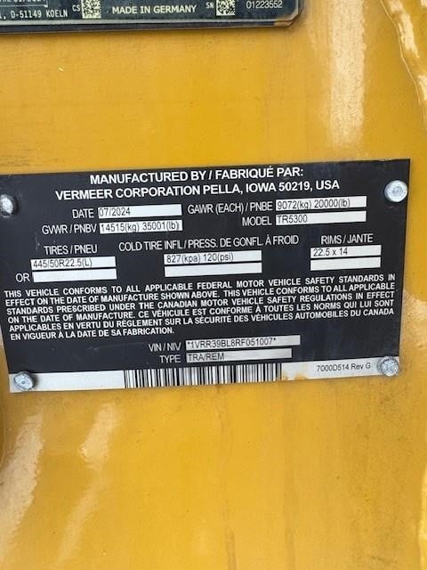 2024 Vermeer TR5300 Trommel 34hrs, radio remote, 25' conveyor, located at our Windsor location.